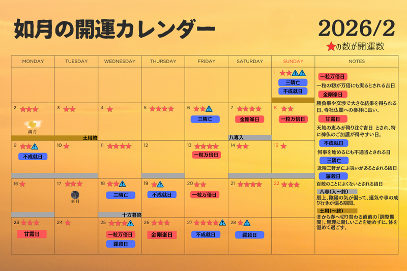 2026年2月の最強開運日を