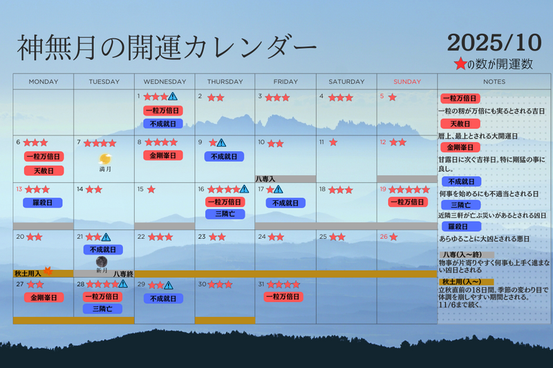 2025年10月の最強開運日を